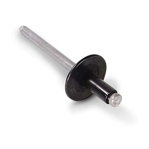 - Head style & size: Large-flange pop rivet with a 5/8" head diameter, 3/16" shaft, and 5/16" body length