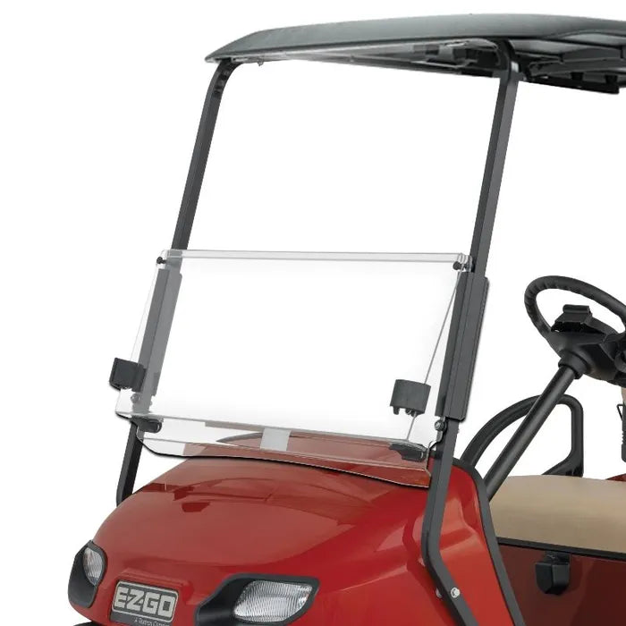 The E-Z-GO 10024724 Windshield is a premium accessory designed specifically for the TXT Fleet golf cart series. This split-kit windshield offers a perfect blend of functionality and style, enhancing the overall experience of your golf cart. Crafted with precision, it ensures a seamless fit and superior durability, making it an ideal choice for both personal and commercial use. The split design allows for versatile usage, providing the option to adjust the windshield according to weather conditions or personal preference. Whether you need full protection from wind and debris or prefer an open-air feel, this windshield accommodates your needs effortlessly.