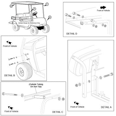 E-Z-GO 634554 Suntop 80-Inch Hardware Kit for Golf Carts
